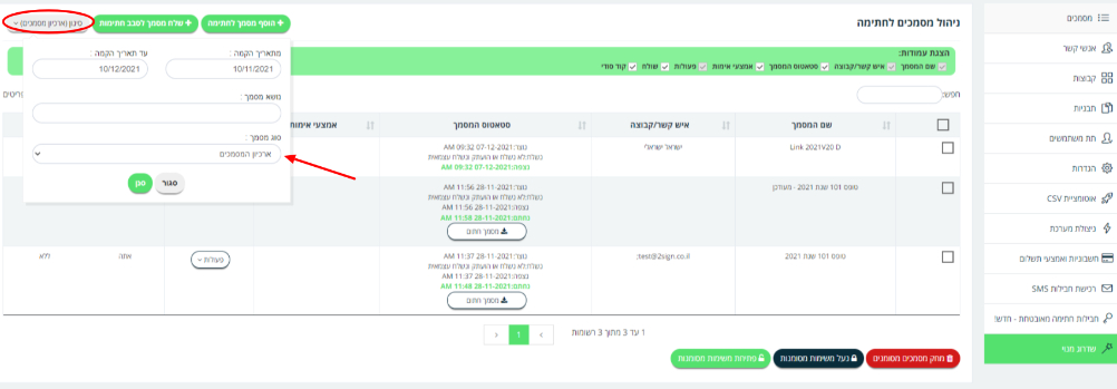 דוגמא מהמערכת חתימה ירוקה -ניהול מסמכים